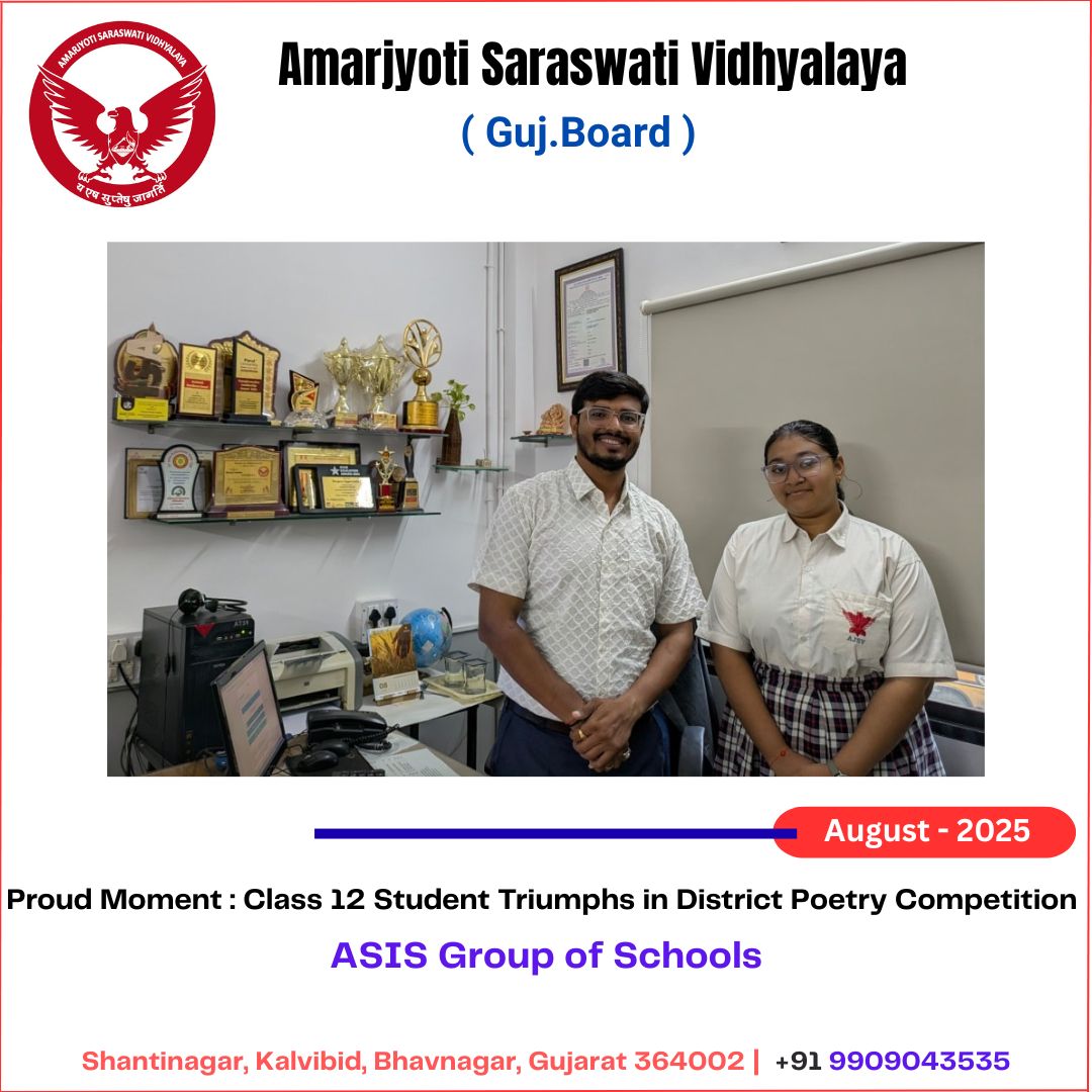 We are proud to share that Aesha Vavadiya, a Class 12 Commerce student of Amarjyoti Saraswati Vidhyalaya, has secured 2nd Rank at […]