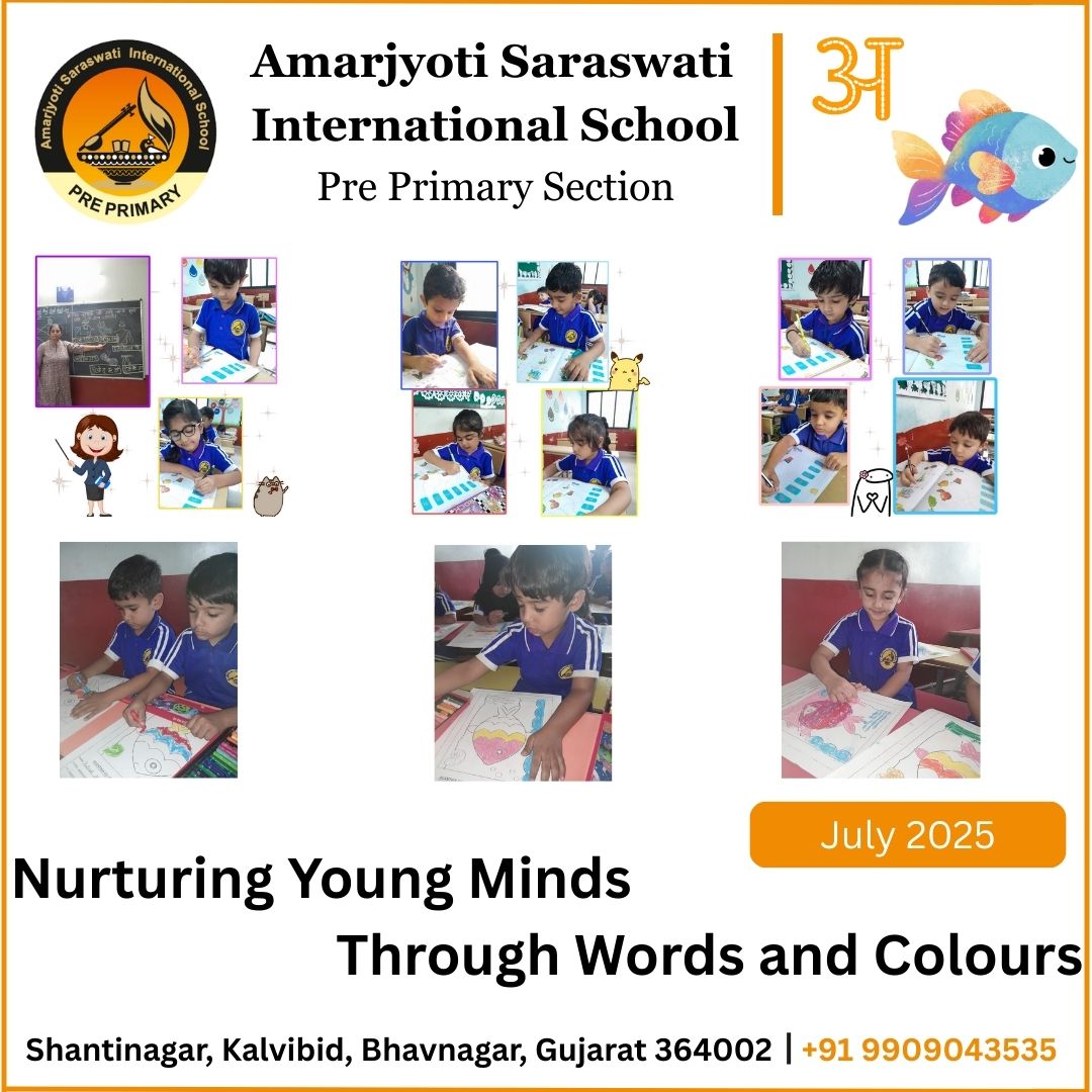 In Junior KG, students will focus on learning to write Hindi words, which is essential for developing their language skills. This foundational step will help them become familiar with the script and enhance their understanding of the language. Additionally, the curriculum includes drawing activities that allow children to express their creativity. By incorporating coloring into their drawings, students can engage in a fun and interactive way to reinforce their learning. Overall, this combination of writing and artistic expression aims to create a well-rounded educational experience for young learners in Junior KG. It fosters both linguistic and creative development, setting the stage for future academic success.