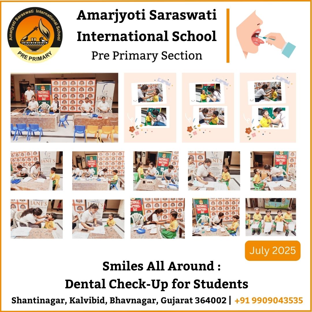 A dental check-up was conducted for the students in celebration of National Doctors Day. We extend our sincere appreciation to Dr. Mehul Jani and his team for their invaluable assistance during this event. Their expertise and dedication contributed significantly to the success of the check-up, ensuring that the students received essential dental care. We are thankful for their commitment to promoting health and well-being within our community.